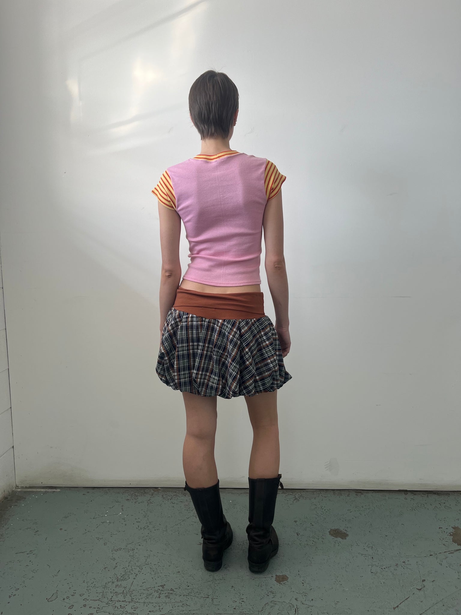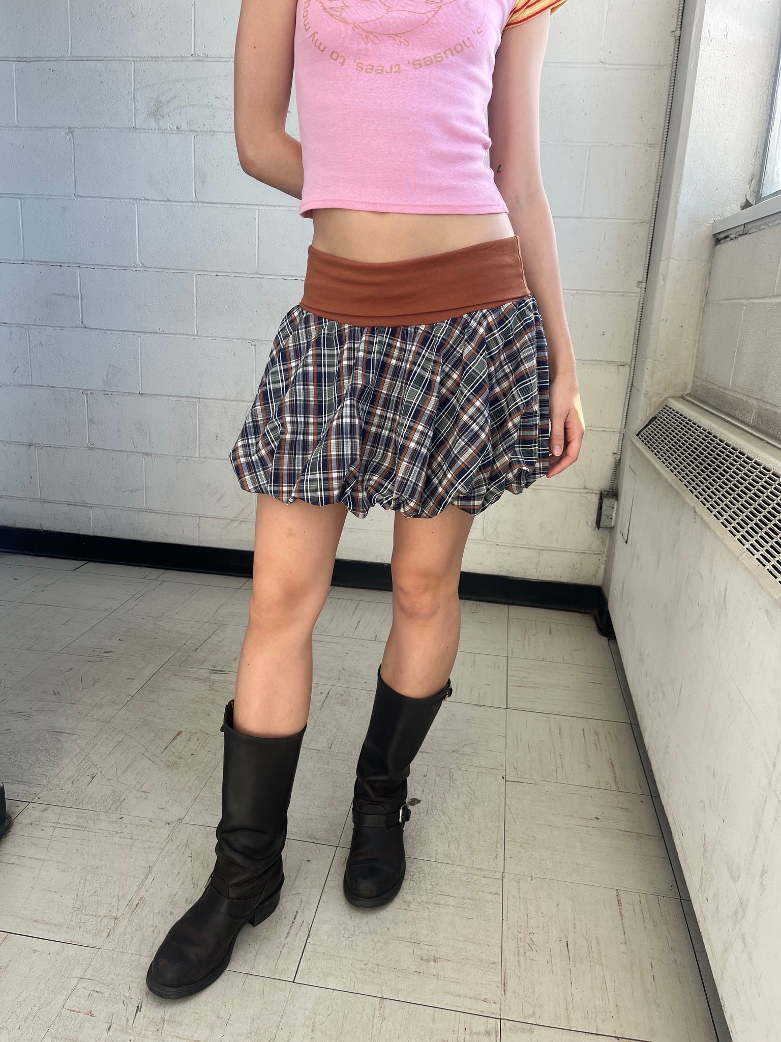 poly cotton blend. waistband is 33" unstretched. skirt is 15"long